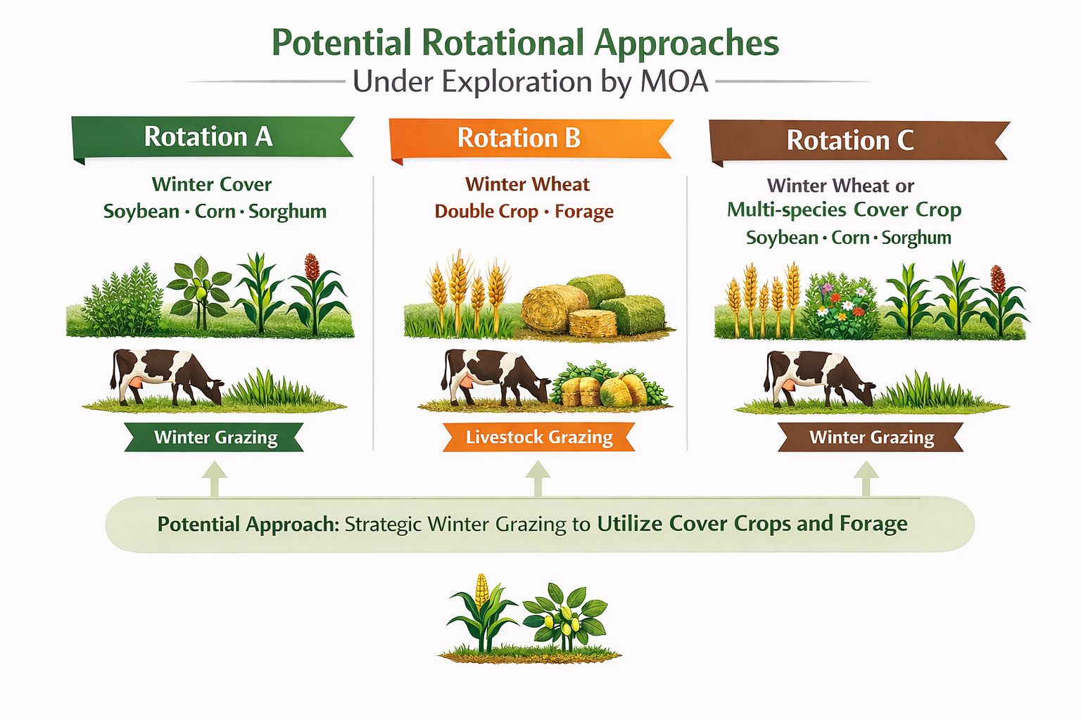 By exploring these opportunities, MOA hopes to better understand how integrated crop-livestock systems could fit into Missouri’s agricultural landscape and what benefits they might offer for farmers, soils, and ecosystems alike.